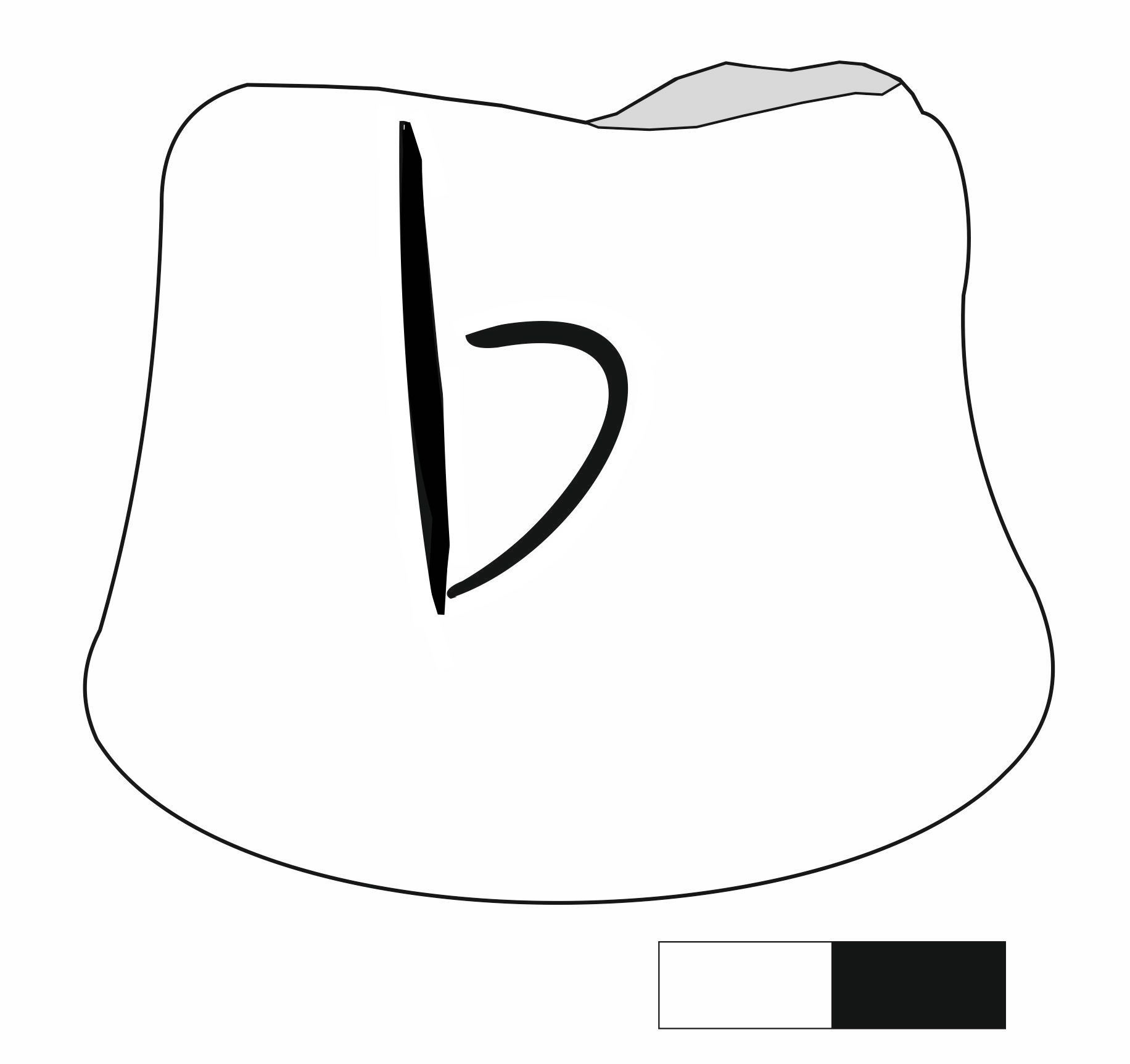 Foot, side, exterior. Originally inscribed on complete vessel.